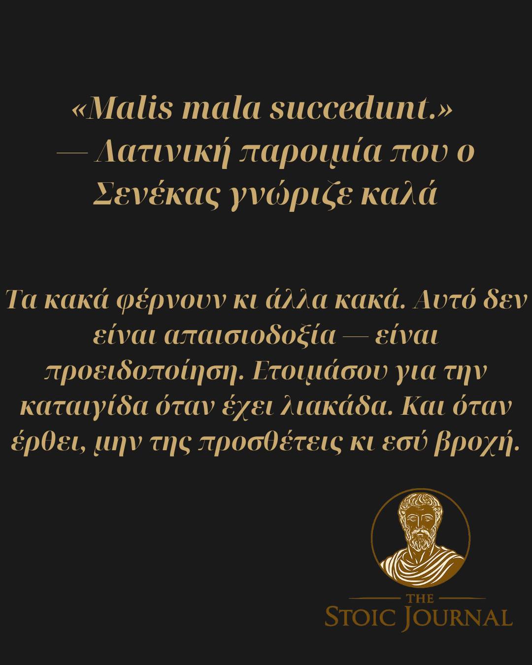 Το 65 μ.Χ., ο Σενέκας λαμβάνει εντολή από τον Νέρωνα να αυτοκτονήσει. Δεν είναι η πρώτη του δοκιμασία. Έχει εξοριστεί, έχει χάσει την περιουσία του, έχει δει φίλους να πέφτουν. Τώρα του ζητούν και τη ζωή του. Δεν παρακαλάει. Δεν εκρήγνυται. Δεν κάνει τίποτα που θα επιτάχυνε τον θάνατό του με τρόπο άσχημο. Ανοίγει τις φλέβες του ήρεμα, μιλά στους φίλους του, δίνει οδηγίες. Μέχρι το τέλος, δεν κάνει τίποτα για να κάνει την κατάσταση χειρότερη. Και αυτό, μόνο αυτό, είναι που ελέγχει. Ο Επίκτητος δεν έχει τίποτα να χάσει γιατί απλούστατα δεν έχει τίποτα. Σκλάβος, χωλαίνει, φτωχός. Κάθε μέρα του φέρνει νέα προβλήματα που δεν επέλεξε και δεν μπορεί να αποφύγει. Και όμως, αυτός ο άνδρας έγινε ο φιλόσοφος που δίδαξε αυτοκράτορες. Γιατί κατάλαβε νωρίς κάτι που οι περισσότεροι καταλαβαίνουν αργά ή ποτέ: δεν ελέγχεις αν θα βρέξει. Ελέγχεις μόνο αν θα βγεις χωρίς μπουφάν στη βροχή και θα αρχίσεις να φωνάζεις στα σύννεφα. Ο Σενέκας έφτασε στο τέλος με αξιοπρέπεια. Ο Επίκτητος έζησε όλη του τη ζωή με αξιοπρέπεια. Δύο διαφορετικές ζωές, ίδιο συμπέρασμα: η καταιγίδα δεν σε σκοτώνει. Η αντίδρασή σου στην καταιγίδα, ναι. Ξέρεις πώς είναι. Μια κακή μέρα δεν έρχεται ποτέ μόνη της. Χάνεις έναν πελάτη και την ίδια μέρα χαλάει και ο εκτυπωτής. Μαλώνεις με τον σύντροφό σου και το αυτοκίνητο αρνείται να ξεκινήσει. Έχεις deadline και πέφτει το σύστημα. Η ζωή δεν διαβάζει καμία ατζέντα. Και εκεί, σε εκείνη ακριβώς τη στιγμή, κάνεις ένα από τα δύο: ή σταθεροποιείς την κατάσταση ή την επιδεινώνεις. Δεν υπάρχει τρίτη επιλογή. Το να φωνάξεις στον υπάλληλο που δεν φταίει. Το να στείλεις το email που δεν έπρεπε. Το να παρατήσεις τη συνάντηση επειδή «δεν αντέχεις άλλο». Το να πιεις παραπάνω για να ξεχαστείς. Αυτές είναι οι κινήσεις που μετατρέπουν μια κακή μέρα σε κακή εβδομάδα και μια κακή εβδομάδα σε κρίση. Δεν έχεις επιλογή να σταματήσεις τη βροχή. Αλλά έχεις επιλογή να μην ανοίξεις την ομπρέλα σου ανάποδα και να γκρινιάζεις που βρέχεσαι. Ο Επίκτητος δεν μπορούσε ν' αλλάξει τίποτα στη ζωή του και έγινε ο πιο ελεύθερος άνθρωπος της εποχής του, γιατί ποτέ δεν έκανε την κατάσταση χειρότερη. «Είναι εύκολο να το λες. Όταν όλα πηγαίνουν στραβά ταυτόχρονα, δεν μπορείς να μένεις ψύχραιμος.» Σωστό. Κανείς δεν μένει τέλεια ψύχραιμος. Ούτε ο Σενέκας. Ούτε ο Μάρκος. Ούτε ο Επίκτητος. Αλλά το ζητούμενο δεν είναι η τελειότητα. Είναι η παύση. Ένα δευτερόλεπτο πριν την αντίδραση είναι αρκετό για να ρωτήσεις: αυτό που πάω να κάνω θα βοηθήσει ή θα χαλάσει περισσότερα; Αν η απάντηση είναι «θα χαλάσει», μην το κάνεις. Αυτό δεν είναι ψυχραιμία. Είναι η ελάχιστη δυνατή αυτοσυγκράτηση. Και συχνά αρκεί. Την επόμενη φορά που θα νιώσεις ότι «όλα πάνε στραβά», πριν κάνεις οτιδήποτε, πριν μιλήσεις, πριν στείλεις, πριν αποφασίσεις ρώτα μόνο αυτό: θα το κάνω καλύτερο ή χειρότερο; Αν δεν ξέρεις την απάντηση, μην κάνεις τίποτα. Η αδράνεια είναι πάντα καλύτερη από την καταστροφή. Καλή δύναμη. The Stoic Journal |